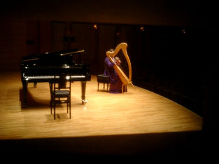 ハープの弾き語り。ペダルがないハープで、片手で上のレバーを操作して半音変えて演奏するのにびっくり |