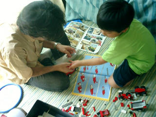 | 必死になってLEGOを作るジッタ元部長。しかしよーちゃんのほうが早い |